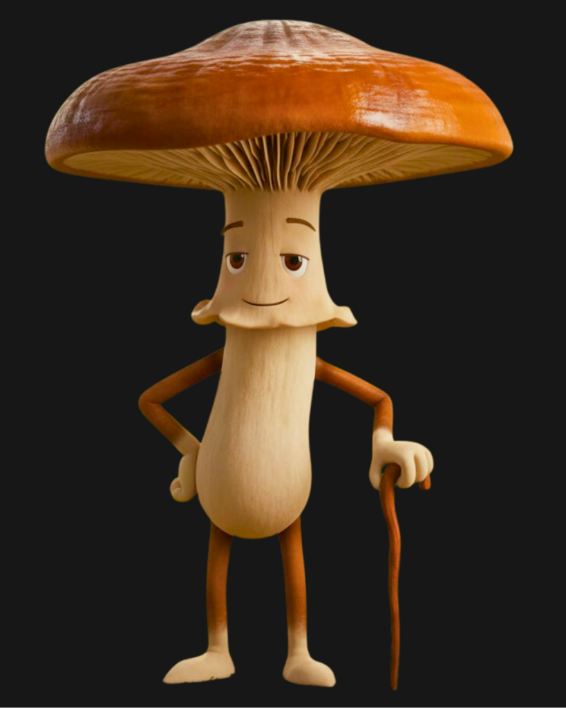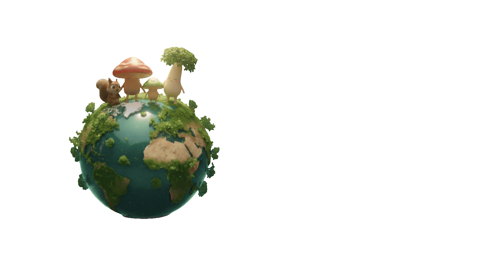 VISUAL: Mundo 3D animado, habitado por hongos adaptógenos y pequeños animales, con texturas naturales que dan como resultado un bosque, iluminacion suave y cálida , englobado por una estética “tierna”.